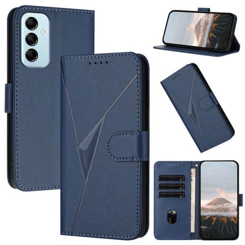 Funda de Cuero Samsung Galaxy M14 5G/F14 5G Cierre Hebilla Diseño Triangular (Azul Real)