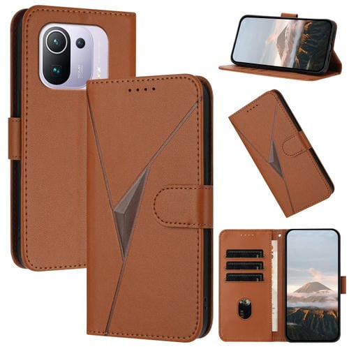 Funda de Cuero con Hebilla y Diseño Triangular para Xiaomi Mi 11 Pro (Marrón)