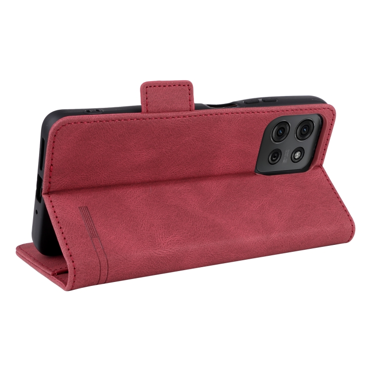Funda de Cuero con Cierre Magnético para Motorola Moto G75 5G (Rojo)
