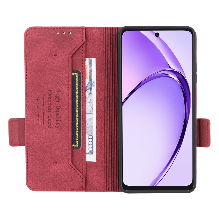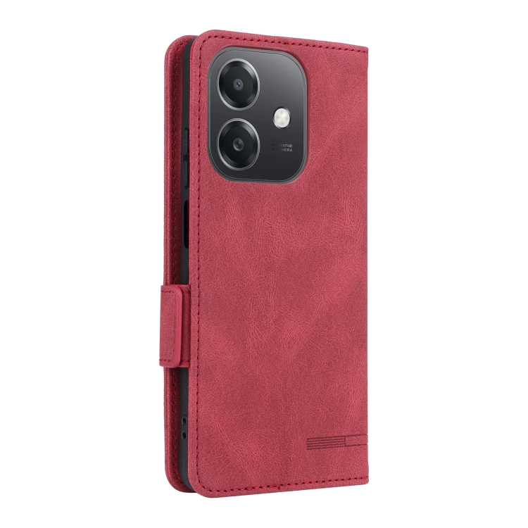 Funda de Cuero con Cierre Magnético para Teléfono Oppo A3X 5G India (Rojo)