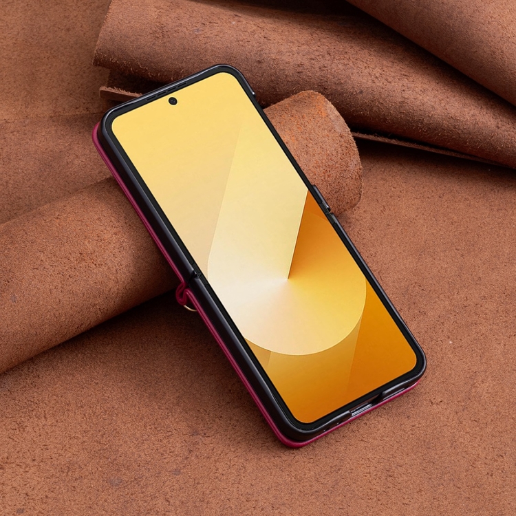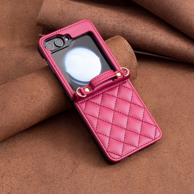 Funda Cuero con Cordón Cruzado en Rombo Samsung Galaxy Z Flip5 (Rosa y Rojo)