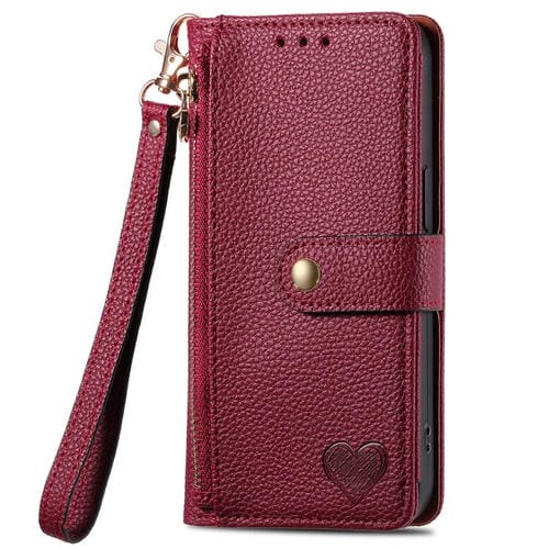 Funda de cuero con cordón y cremallera Love para iPhone 17 (roja)