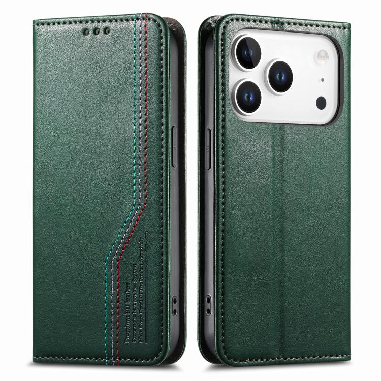 Funda de cuero con correa elástica y ventosa magnética para iPhone 17 Pro Max (verde)