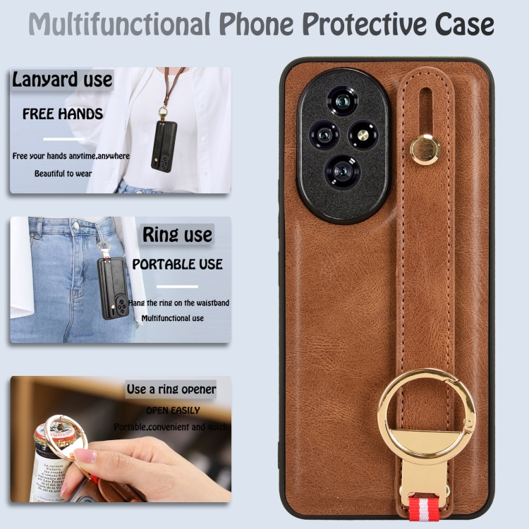 Funda de Cuero con Correa para el Hombro para Honor 200 5G (Marrón)