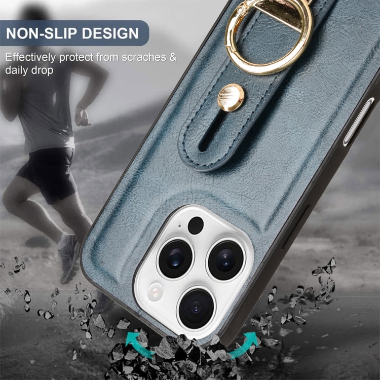 Funda de Cuero con Correa para la Muñeca para iPhone 16 Pro (Azul)
