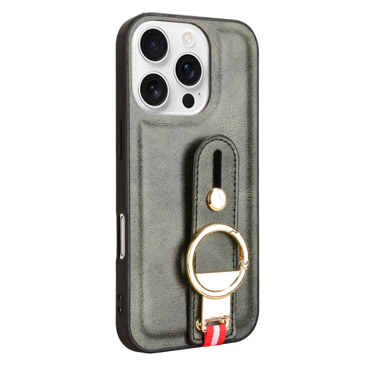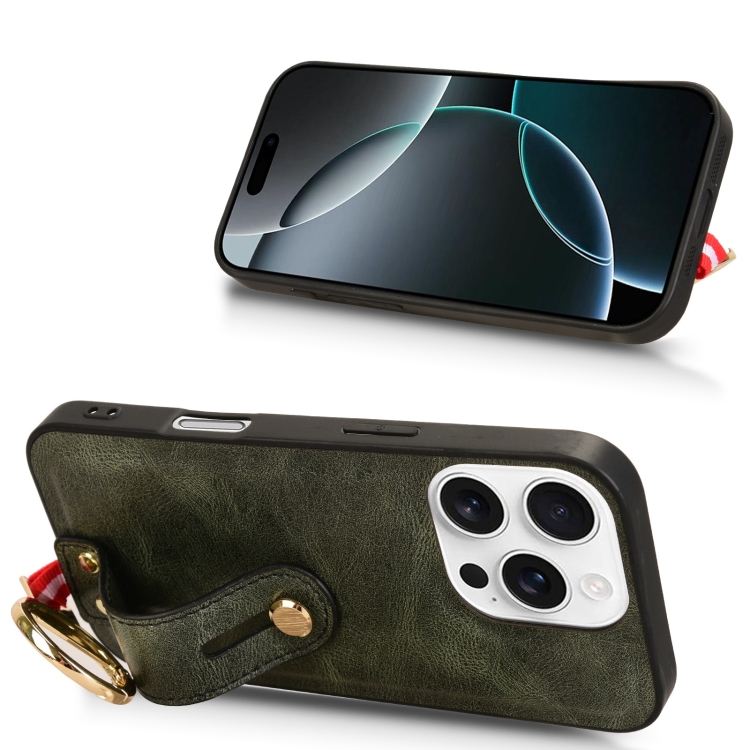 Funda de Cuero con Correa para la Muñeca para iPhone 16 Pro (Verde)