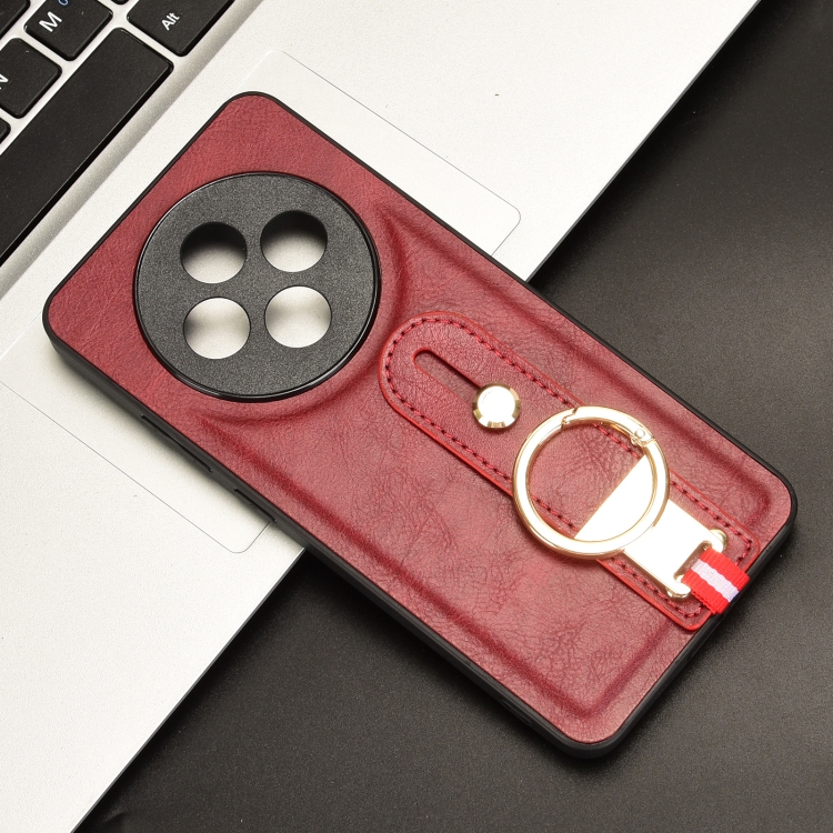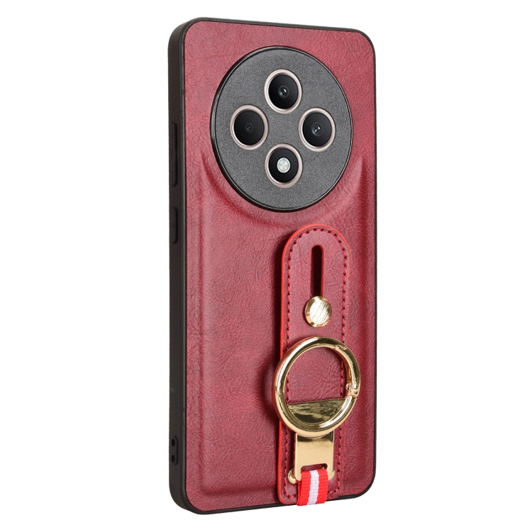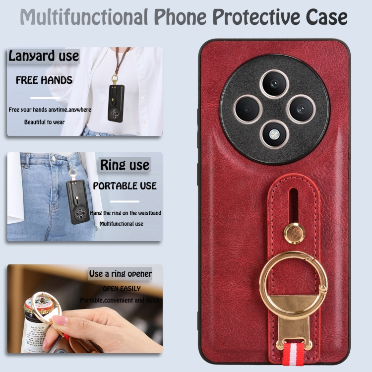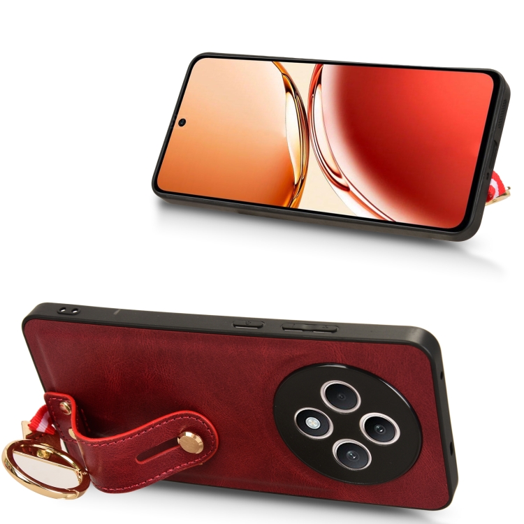 Funda de Cuero con Correa para la Muñeca para Oppo Reno12 F 5G (Rojo)