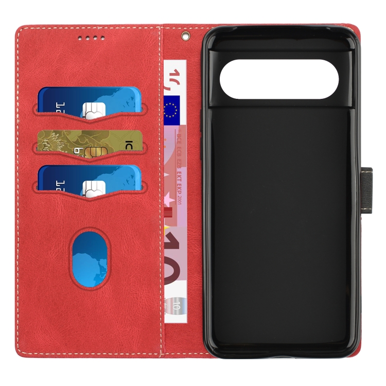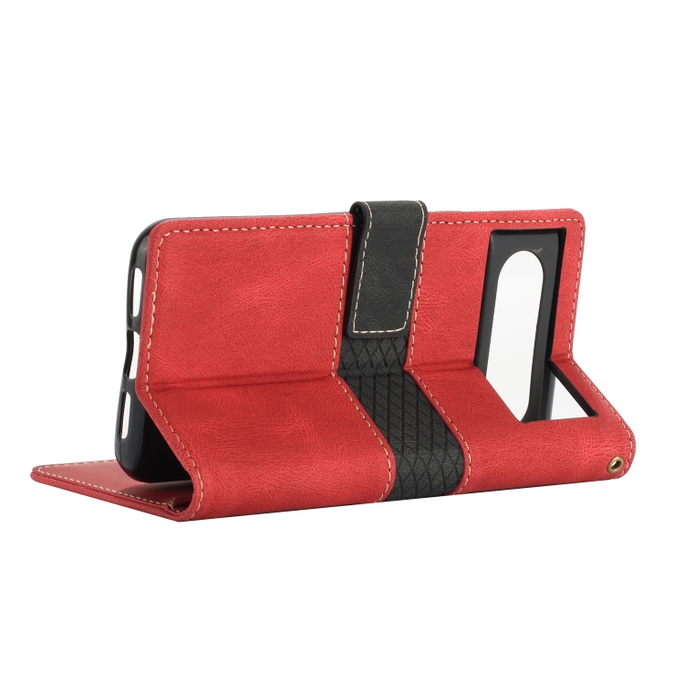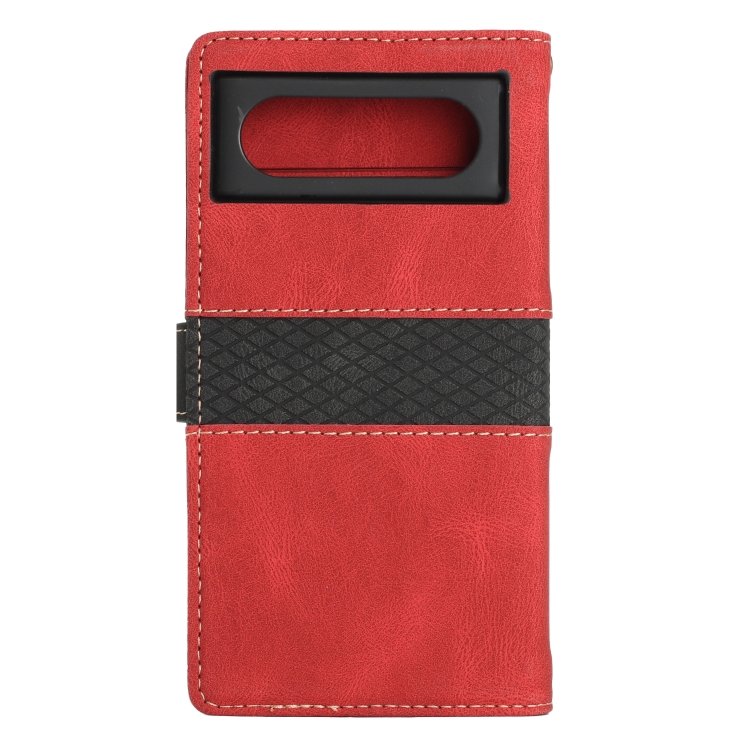 Funda de Cuero Google Pixel 8 con Costuras en Cuadrícula y Cordón (Rojo)