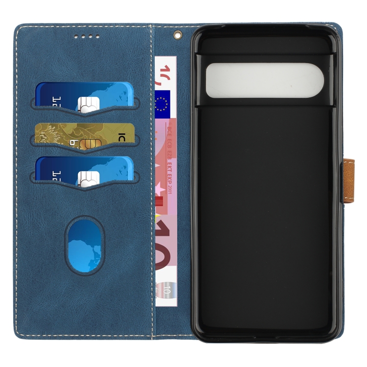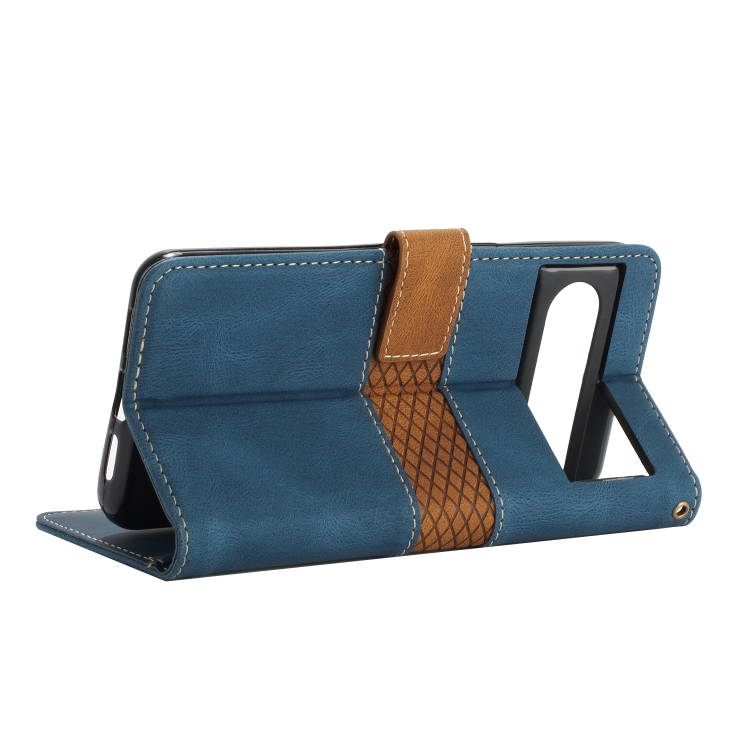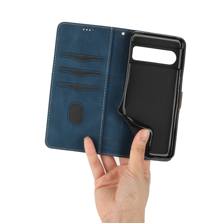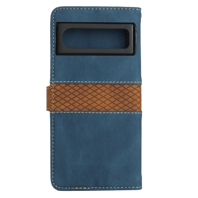 Funda de Cuero Google Pixel 8 Pro con Costuras en Cuadrícula y Cordón (Azul)