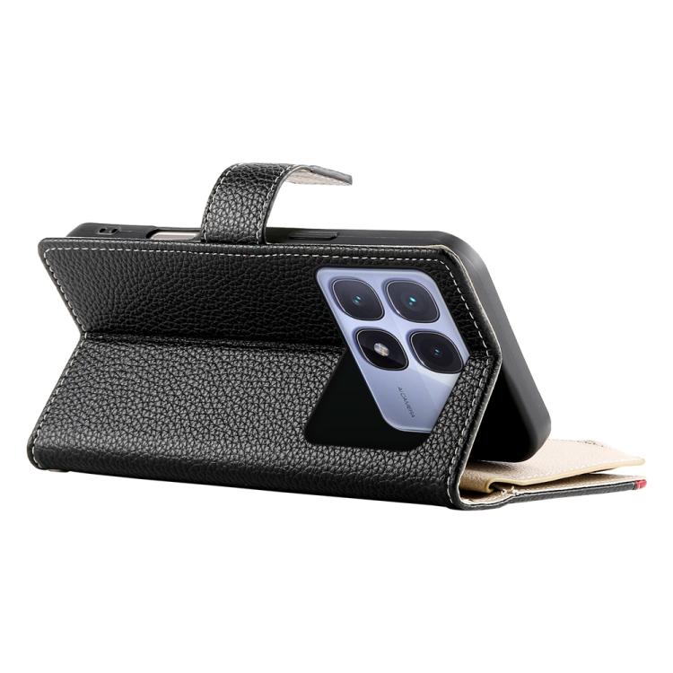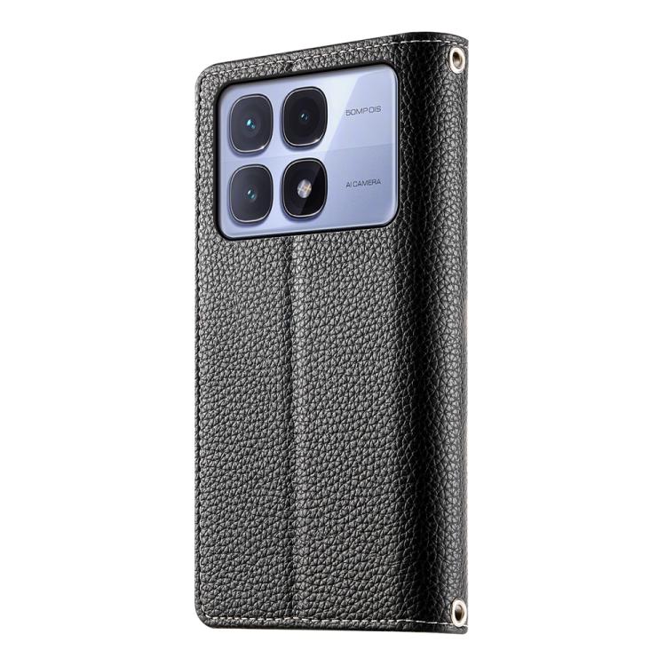 Funda de cuero con cremallera para Redmi K70 Ultra, con múltiples tarjetas y costuras, con correa corta (negra)