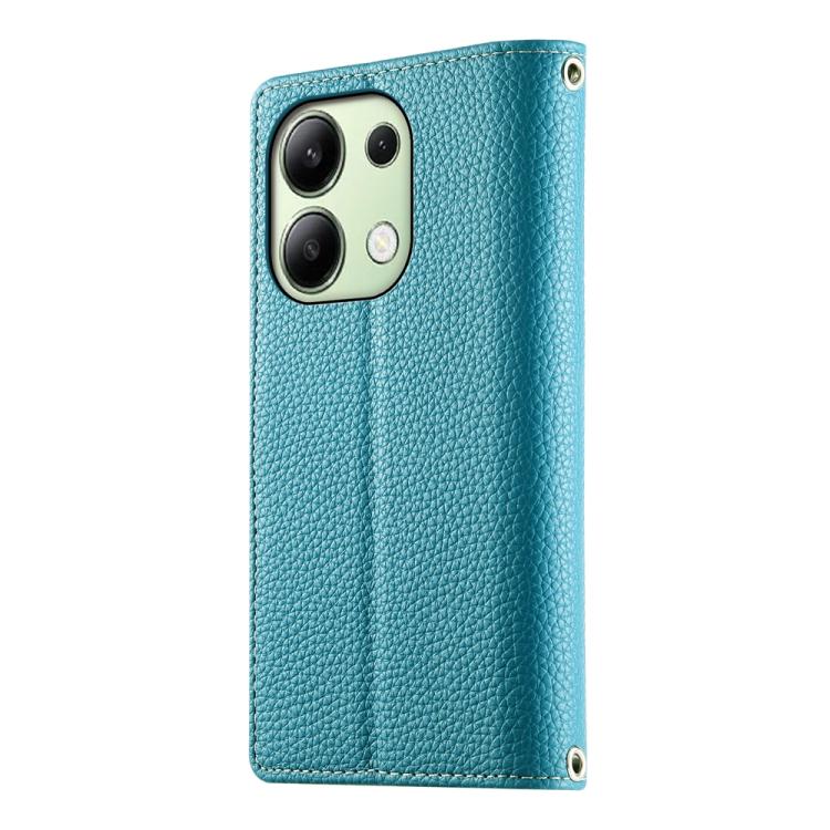 Funda de cuero con cremallera para Redmi Note 13 4G, con costuras globales, múltiples tarjetas y correa corta (azul)