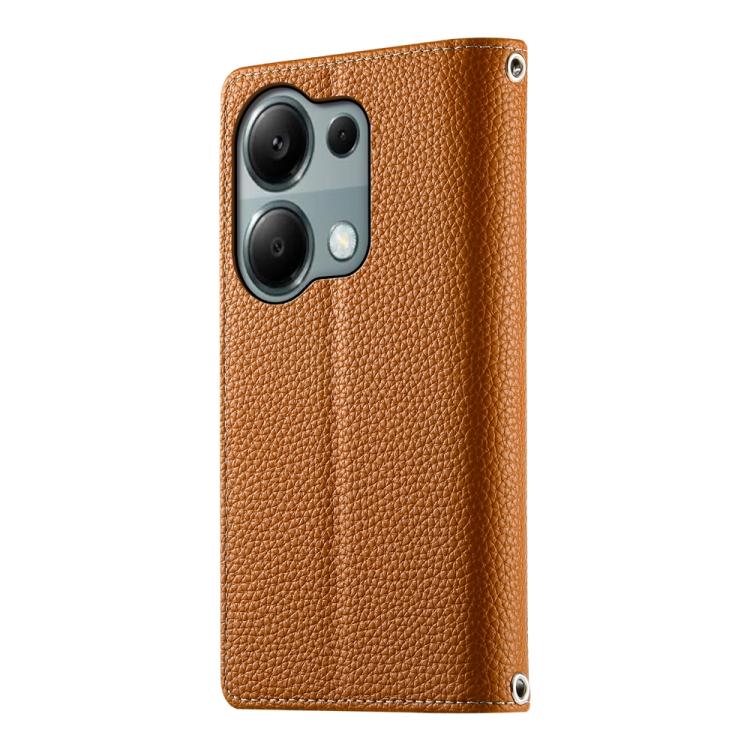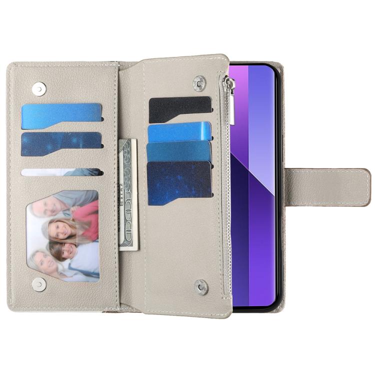 Funda de cuero con cremallera para Redmi Note 13 Pro 4G / Poco M6 Pro, con costuras, para múltiples tarjetas y correa corta (marrón)