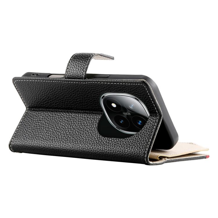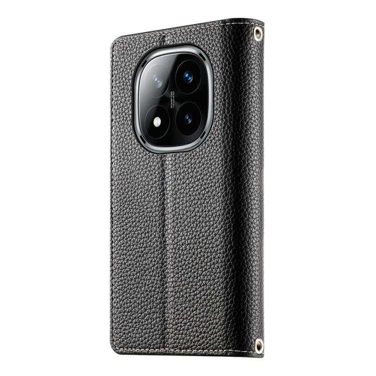 Funda de cuero con cremallera para Redmi Note 14 Pro 4G, con costuras, para múltiples tarjetas y correa corta (negra)