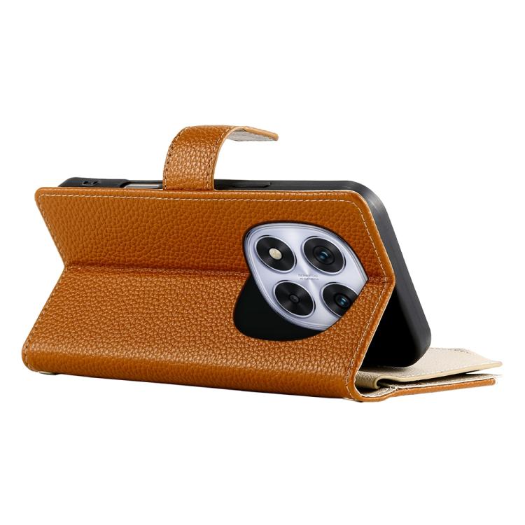 Funda de cuero con cremallera para Redmi Note 14 Pro 5G / Note 14 Pro+ 5G, con costuras, para múltiples tarjetas y correa corta (marrón)