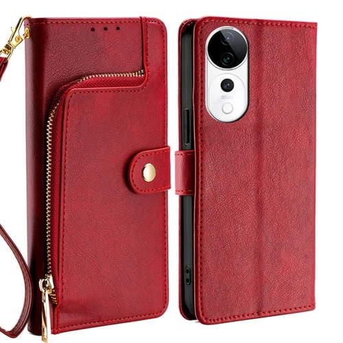 Funda de Cuero con Cremallera para Teléfono Vivo S19 Pro (Rojo)
