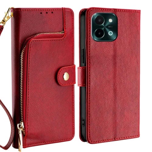 Funda de Cuero con Cremallera para Teléfono Vivo Y28 4G (Rojo)
