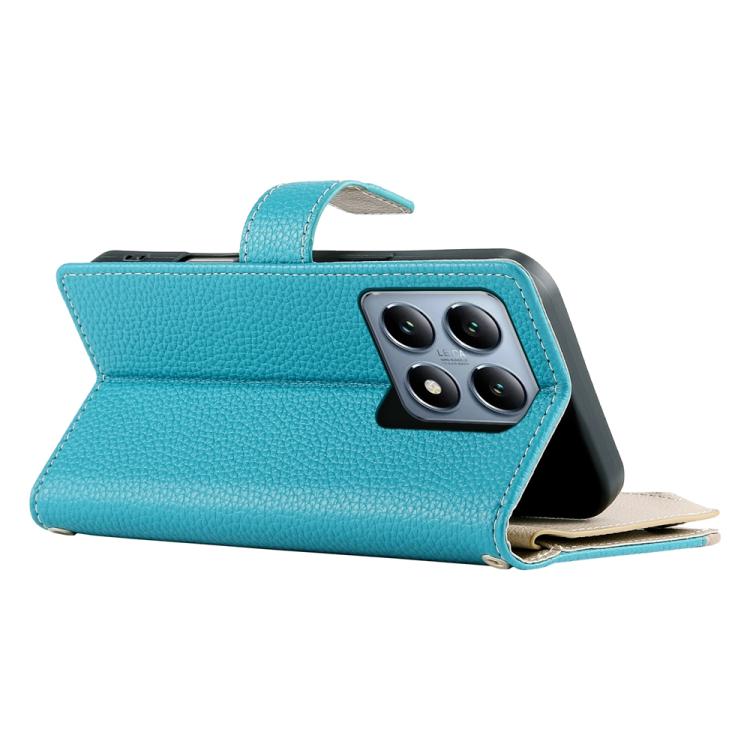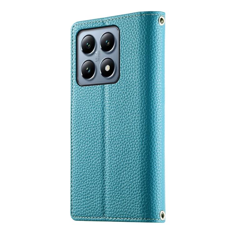 Funda de cuero con cremallera para Xiaomi 14T Pro, con múltiples tarjetas y costuras, con correa corta (azul)