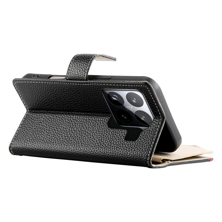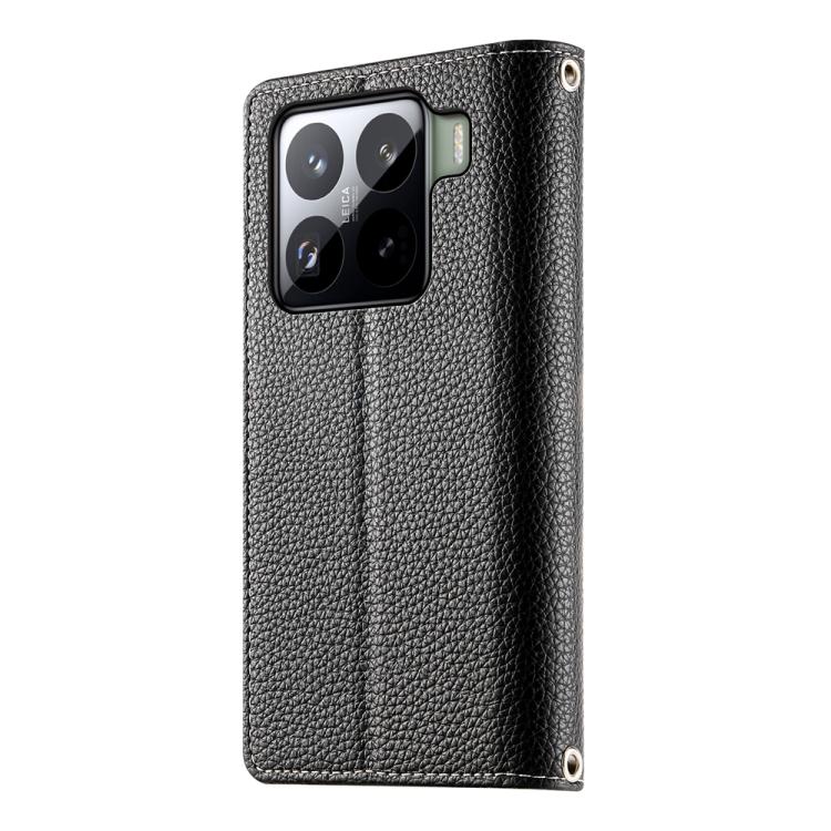 Funda de cuero con cremallera para Xiaomi 15 Pro, con múltiples tarjetas y costuras, con correa corta (negra)
