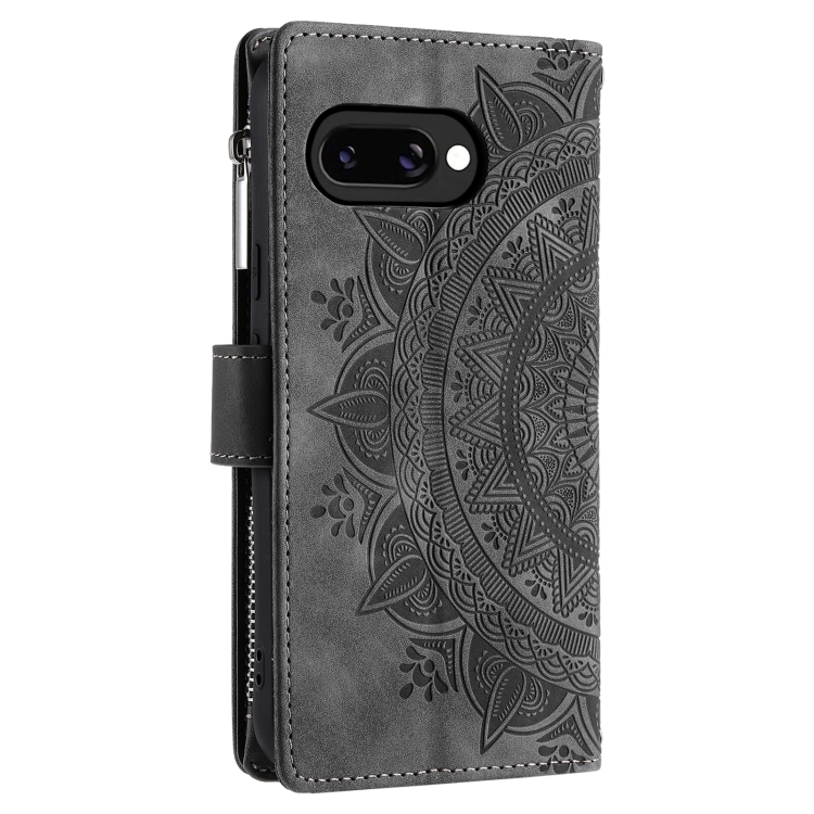 Funda de Cuero con Cremallera y Tarjetero para Google Pixel 9A (Gris)