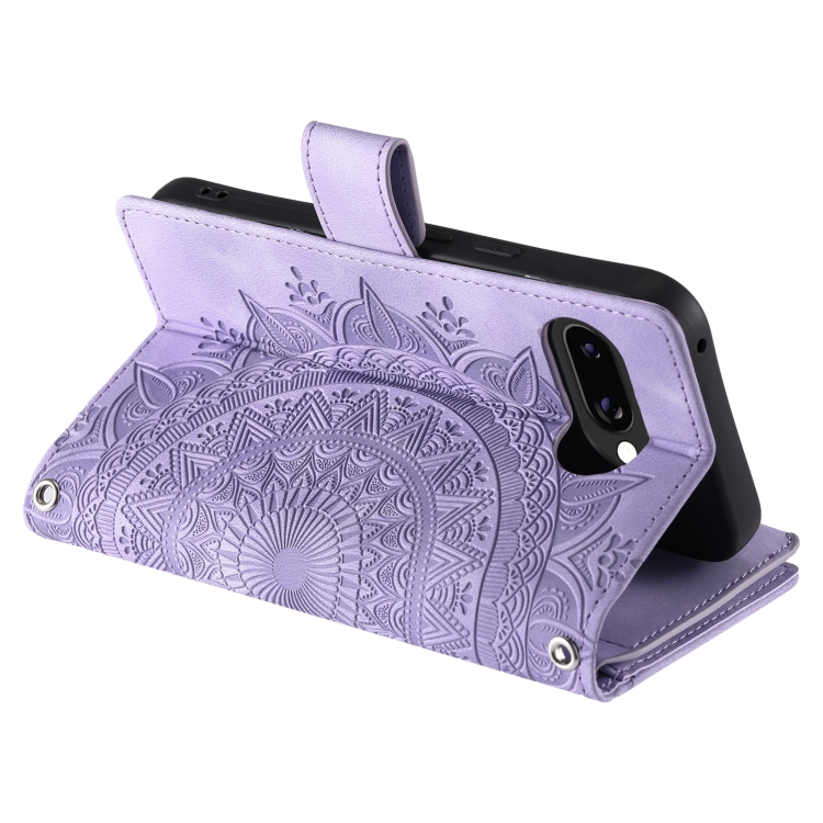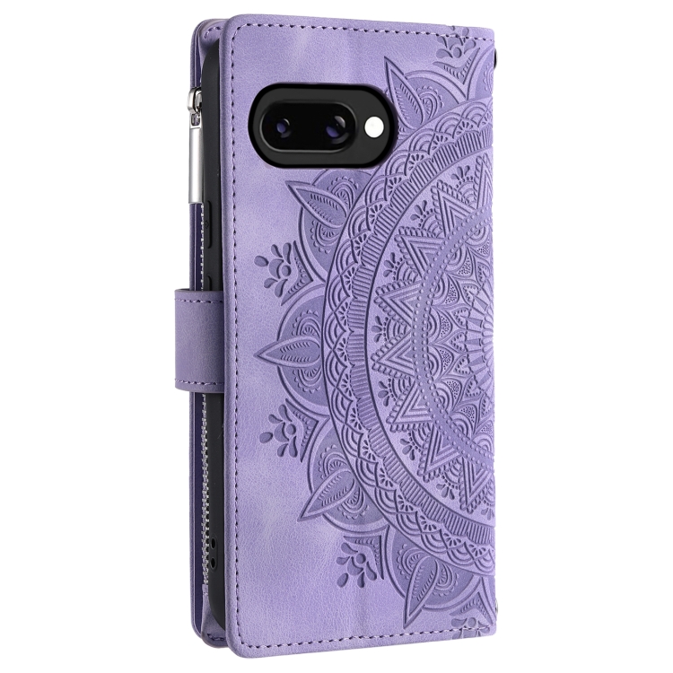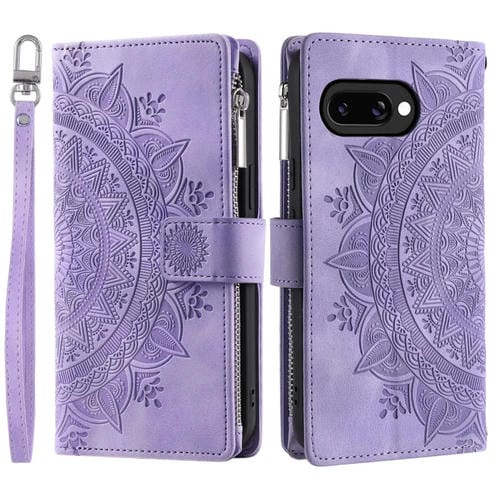 Funda de Cuero con Cremallera y Diseño de Tótem para Google Pixel 9A (Morado)