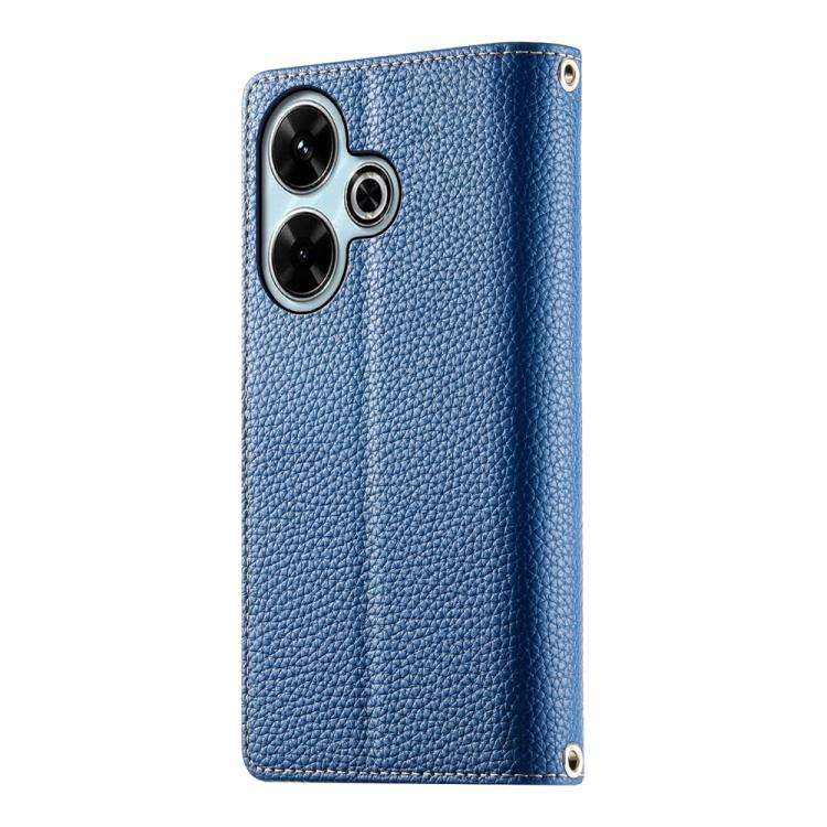 Funda de cuero con cremallera y múltiples tarjetas para Redmi 13 4G / 5G / Xiaomi Poco M6 4G, con costuras y correa corta (azul oscuro)