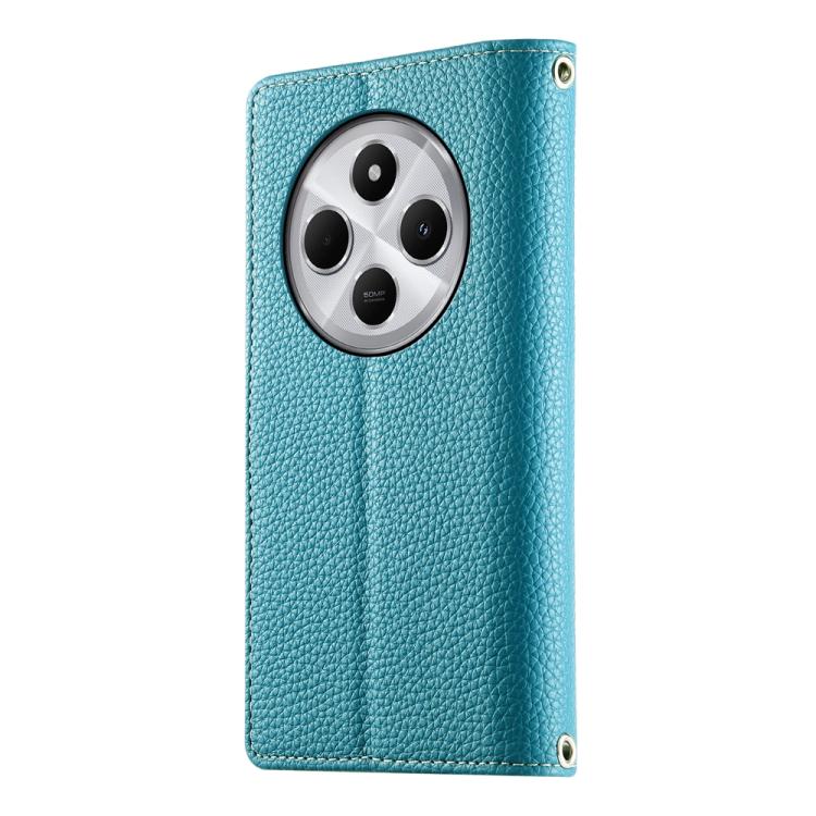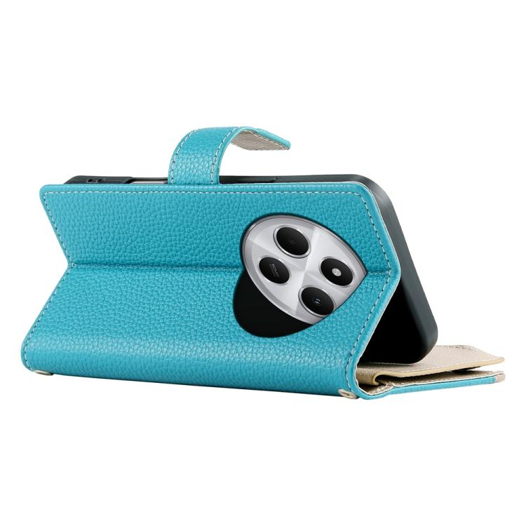 Funda de cuero con cremallera y múltiples tarjetas para Redmi 14C 4G / 14R / A4 5G / A3 Pro, con costuras y correa corta (azul)