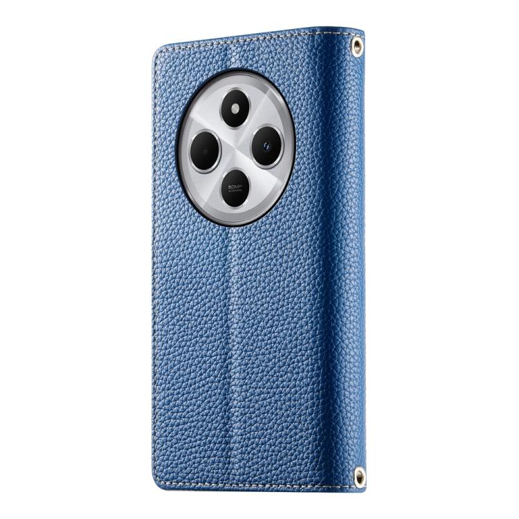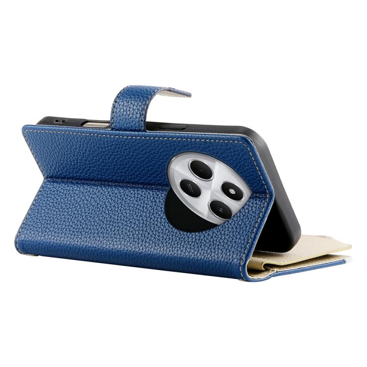 Funda de cuero con cremallera y múltiples tarjetas para Redmi 14C 4G / 14R / A4 5G / A3 Pro, con costuras y correa corta (azul oscuro)