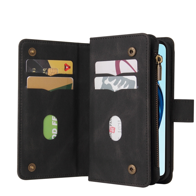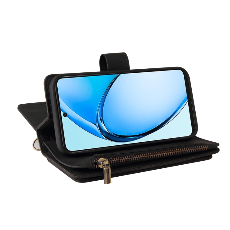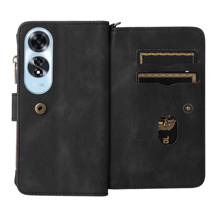 Funda de Cuero con Cremallera y Ranuras para Múltiples Tarjetas para Oppo A60 4G (Negro)