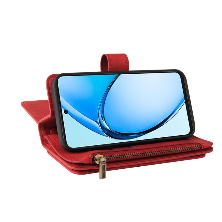 Funda de Cuero con Cremallera y Ranuras para Múltiples Tarjetas para Oppo A60 4G (Rojo)