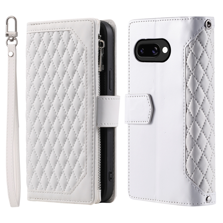 Funda de Cuero con Cremallera y Cordón para Google Pixel 9A (Blanco)