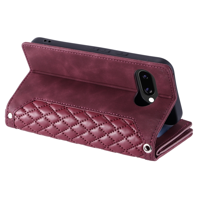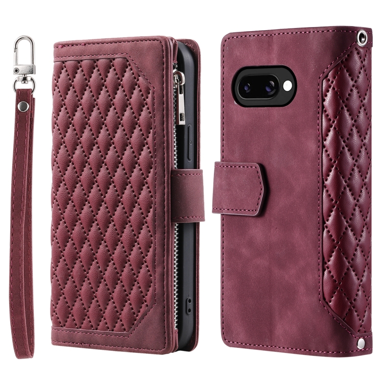 Funda de Cuero con Cremallera y Cordón para Google Pixel 9A (Rojo Vino)