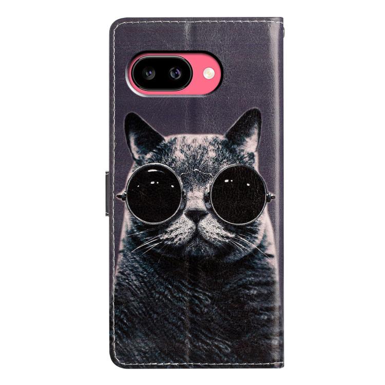 Funda de Cuero para Google Pixel 9A con Dibujo de Colores Gato con Gafas de Sol