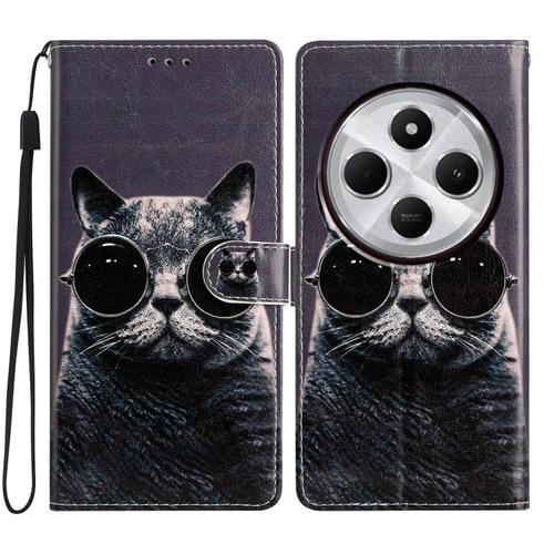 Funda de Cuero con Dibujo de Colores para Redmi A4 5G (Gato con Gafas de Sol)