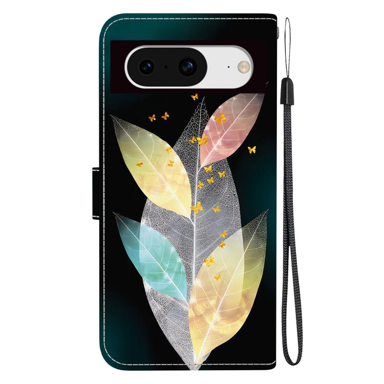 Funda de Cuero con Dibujo y Textura de Cristal para Google Pixel 8 (Hojas de Colores)