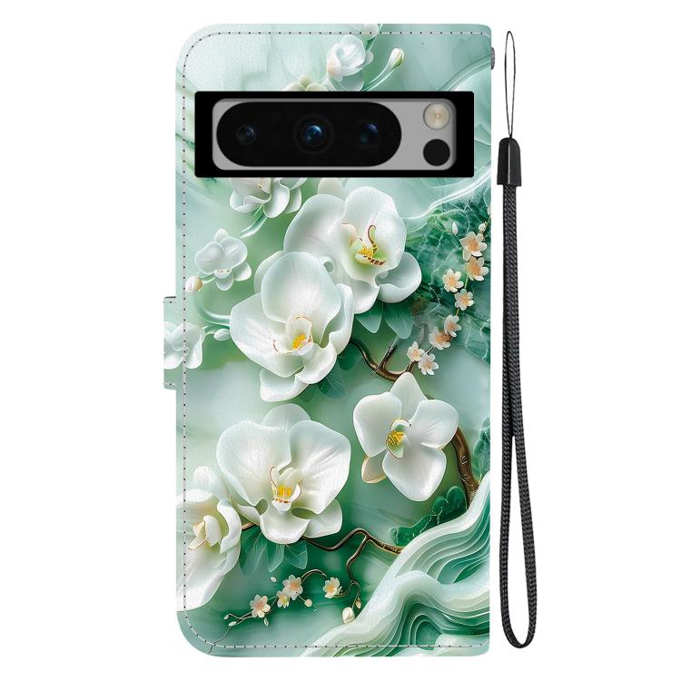 Funda de Cuero para Google Pixel 8 Pro con Dibujo de Colores y Textura de Cristal (Flores de Jade)