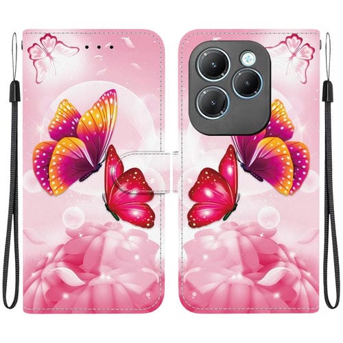 Funda de Cuero con Dibujo y Textura de Cristal para Infinix Hot 40/40 Pro (Mariposas Rosas)