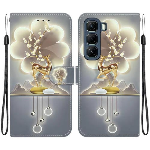 Funda de Cuero con Dibujo de Colores y Textura de Cristal para Infinix Hot 50 5G (Ciervo Sika)