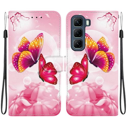 Funda de Cuero con Dibujo y Textura de Cristal para Infinix Hot 50 5G (Mariposas Rosas)