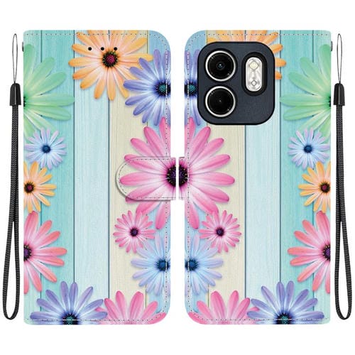 Funda de Cuero para Infinix Hot 50I/Smart 9 con Dibujo de Colores y Textura de Cristal (Girasoles)