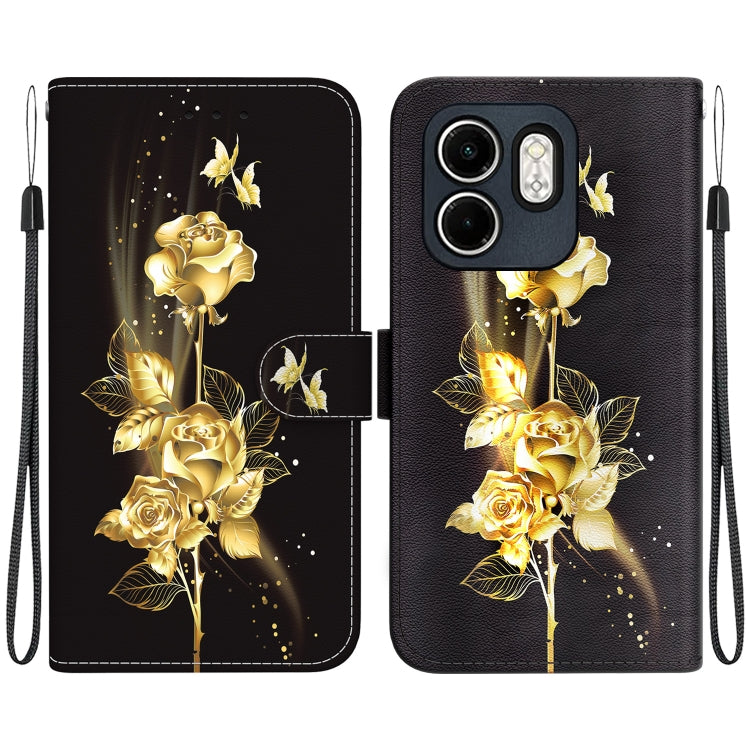 Funda de Cuero para Infinix Hot 50I Smart 9 con Dibujo de Colores y Textura de Cristal (Mariposa Dorada y Rosa)