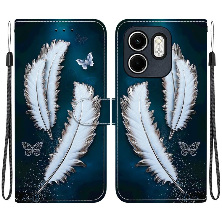 Funda de Cuero para Infinix Hot 50I/Smart 9 con Dibujo de Colores y Textura de Cristal (Plumas de Mariposa Blancas)