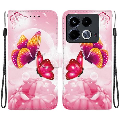 Funda de Cuero con Dibujo y Textura de Cristal para Infinix Note 40 4G (Mariposas Rosas)