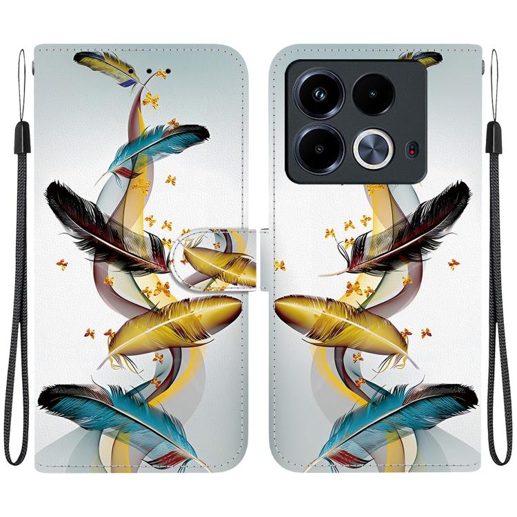 Funda de Cuero para Infinix Note 40 4G con Dibujo de Colores y Textura de Cristal (Plumas de Mariposa Doradas)