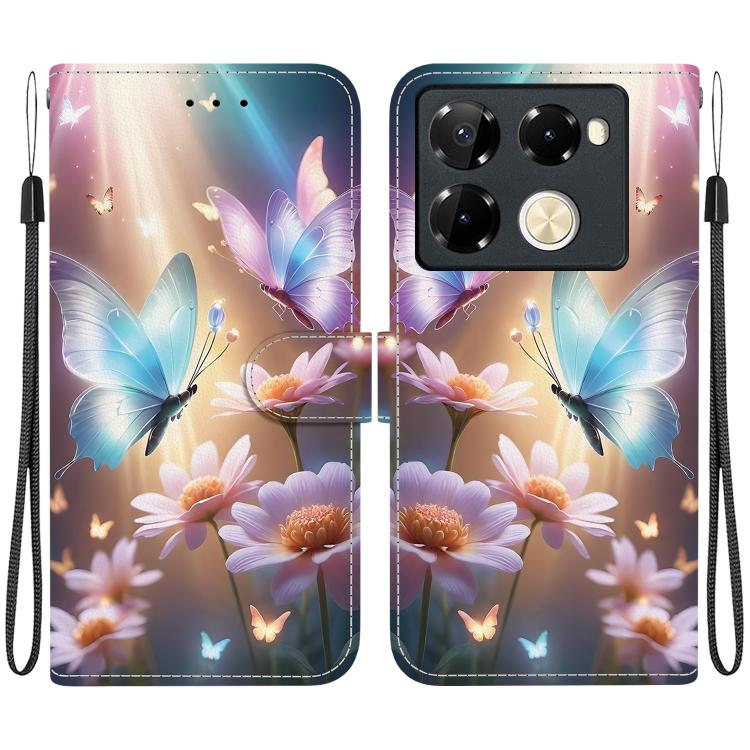 Funda de Cuero con Dibujo y Textura de Cristal para Infinix Note 40 Pro 4G/5G/Pro+ (Mariposa y Flor)