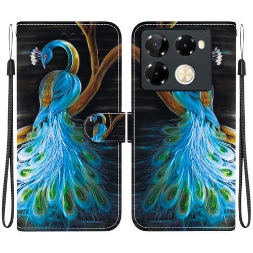 Funda de Cuero con Dibujo de Colores y Textura de Cristal para Infinix Note 40 Pro 4G/5G/Pro+ (Pavo Real)