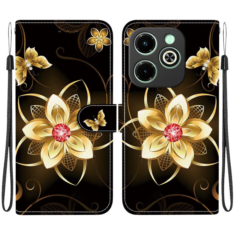 Funda de Cuero para Infinix Smart 8/HD/Hot 40I con Dibujo Colorido y Textura de Cristal (Flor Dorada)
