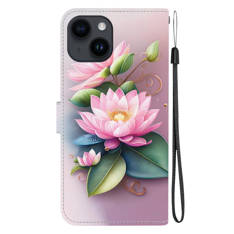 Funda de Cuero para iPhone 15 Plus con Dibujo de Colores y Textura de Cristal (Lotus)