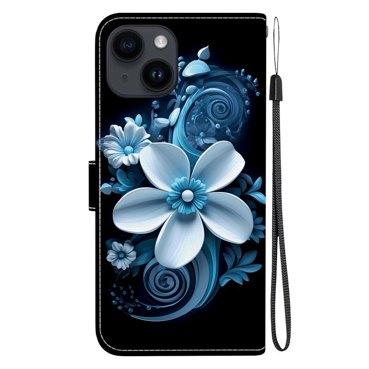 Funda de Cuero para iPhone 15 Plus con Dibujo de Colores y Textura de Cristal (Orquídea Negra)