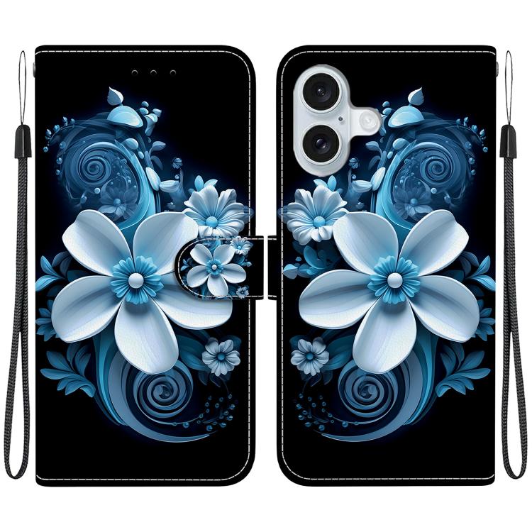 Funda de Cuero para iPhone 16 con Dibujo de Colores y Textura de Cristal (Orquídea Negra)