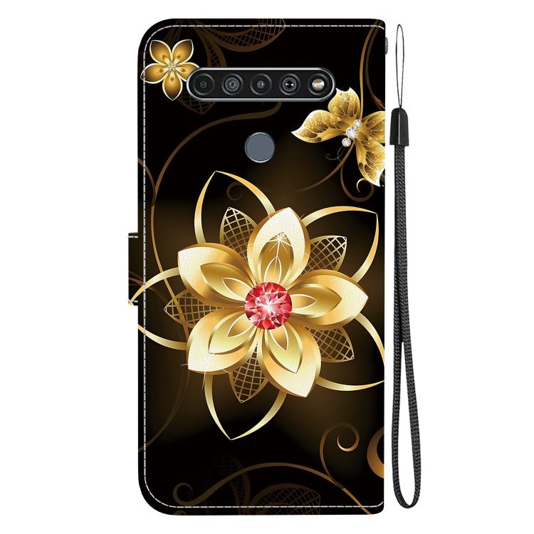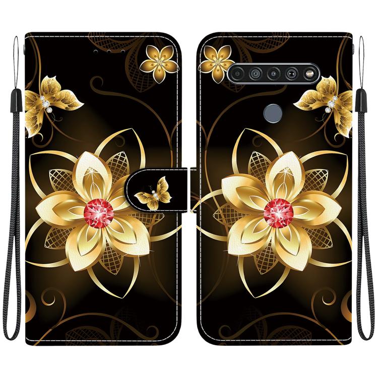 Funda de Cuero con Dibujo y Textura de Cristal para LG K61 (Flor Dorada)